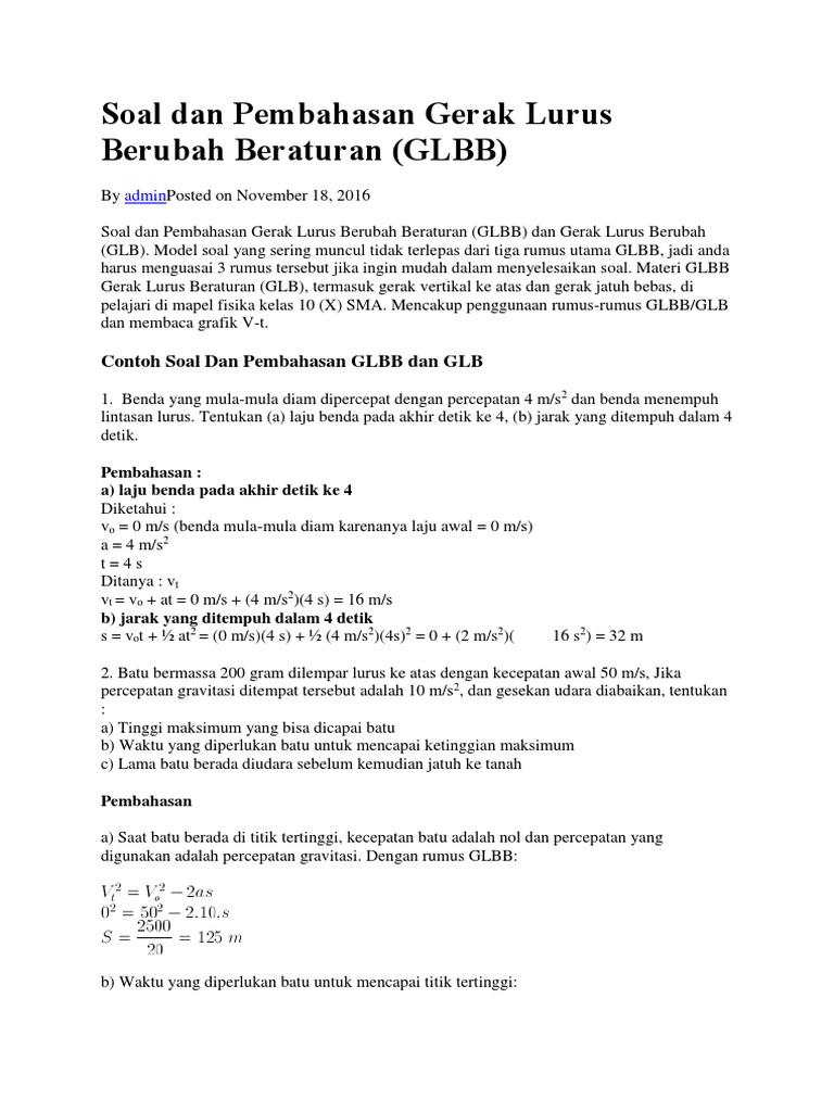 Contoh Soal Glbb Diperlambat Dan Penyelesaiannya